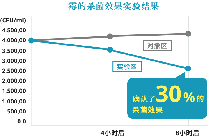 分别在距离实验液体30cm的抗菌灯照射实验区与非照射实验区进行0·4·8小时的静置,并分别测定其浓度。