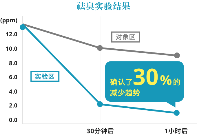测定经抗菌灯照射的实验区与非照射的实验区分别在0・30分钟・一个小时后的浓度。
